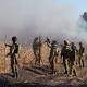 Soldats israéliens près d'un incendie causé par une roquette dans le nord d'Israël près de la frontière libanaise. Des roquettes tirées à partir du plateau du Golan en Syrie sont tombées sans faire de victime près d'un village dans le nord d'Israël ...